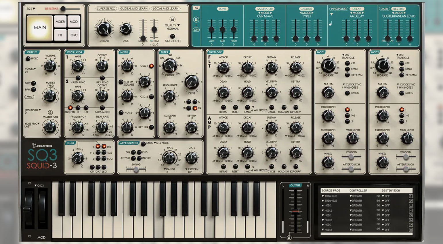 Squid-3 makes use of the company’s proprietary MUST (Modular Unified Synthesis Technology) engine that combines modeling with convolution. The company is promising audio quality that sounds finished, “even before the FX,” and raw synthesis that sounds like a mastered record