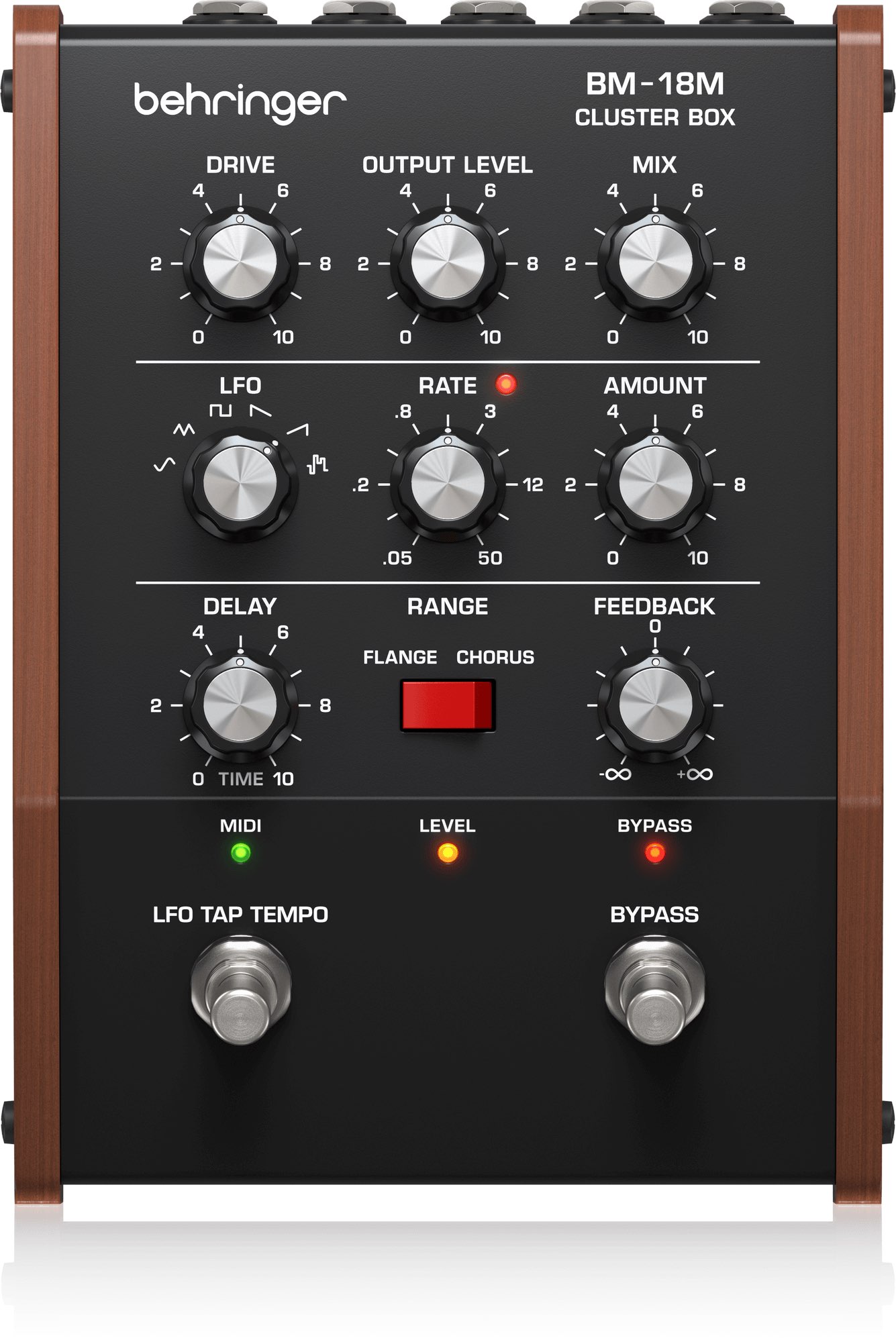 The Behringer BM-18M Cluster Box is the latest release in their run of Moog-style analog effects. This analog chorus and flanger pedal is an affordable version of the Moogerfooger and offers plenty of modulation options.