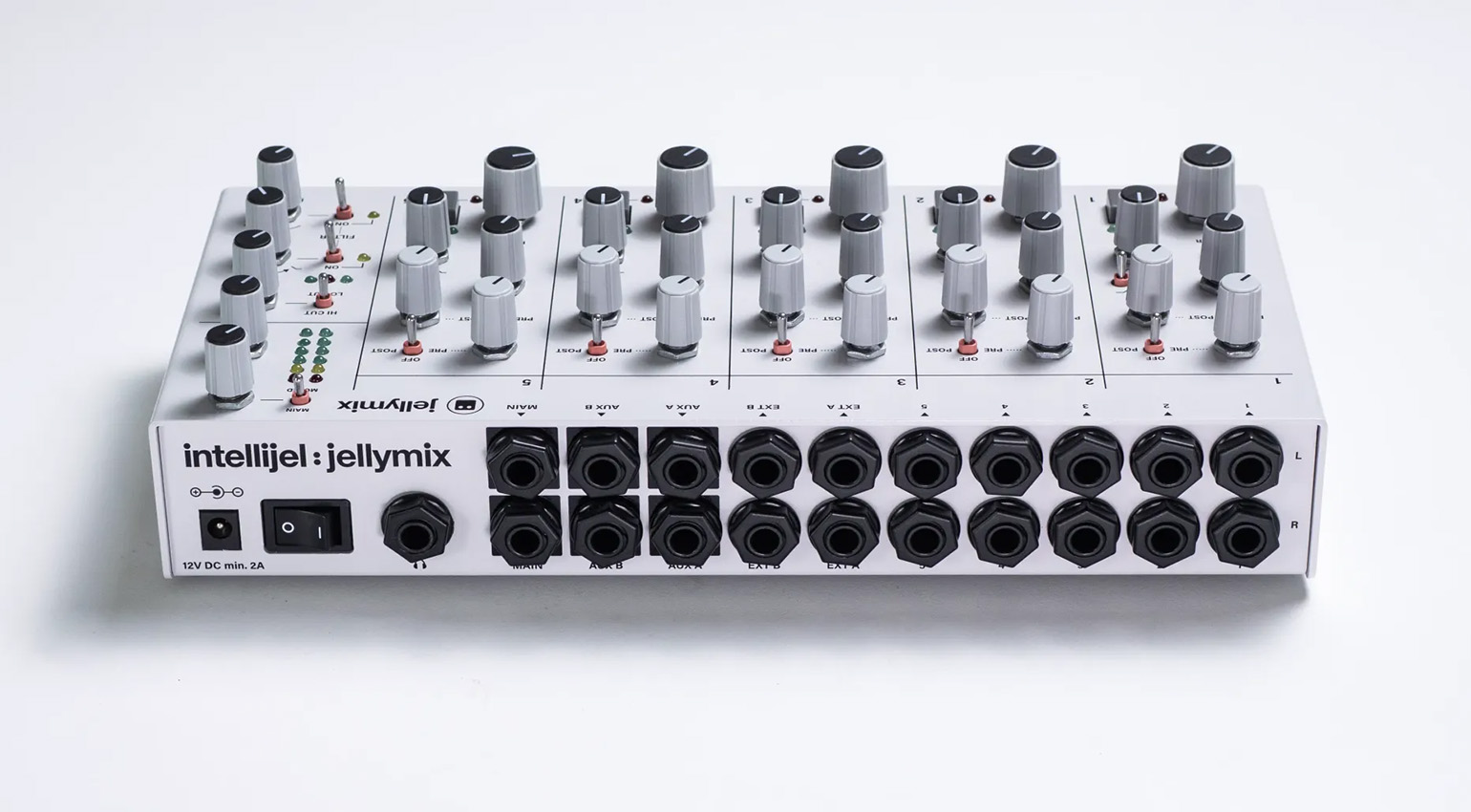 Each channel has a simple, but effective tilt EQ for tone control. The Jellymix also offers two stereo aux sends (pre or post) with stereo returns.