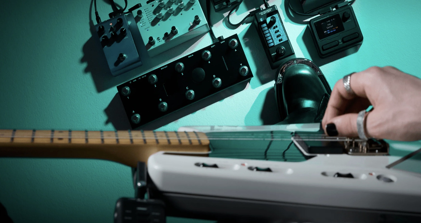 Seamlessly turning movement into music, the Dimension Shifter harnesses the natural tension of your guitar strap. As you move or lean, the device translates your movements into digital commands, which it beams wirelessly to a pedalboard receiver.