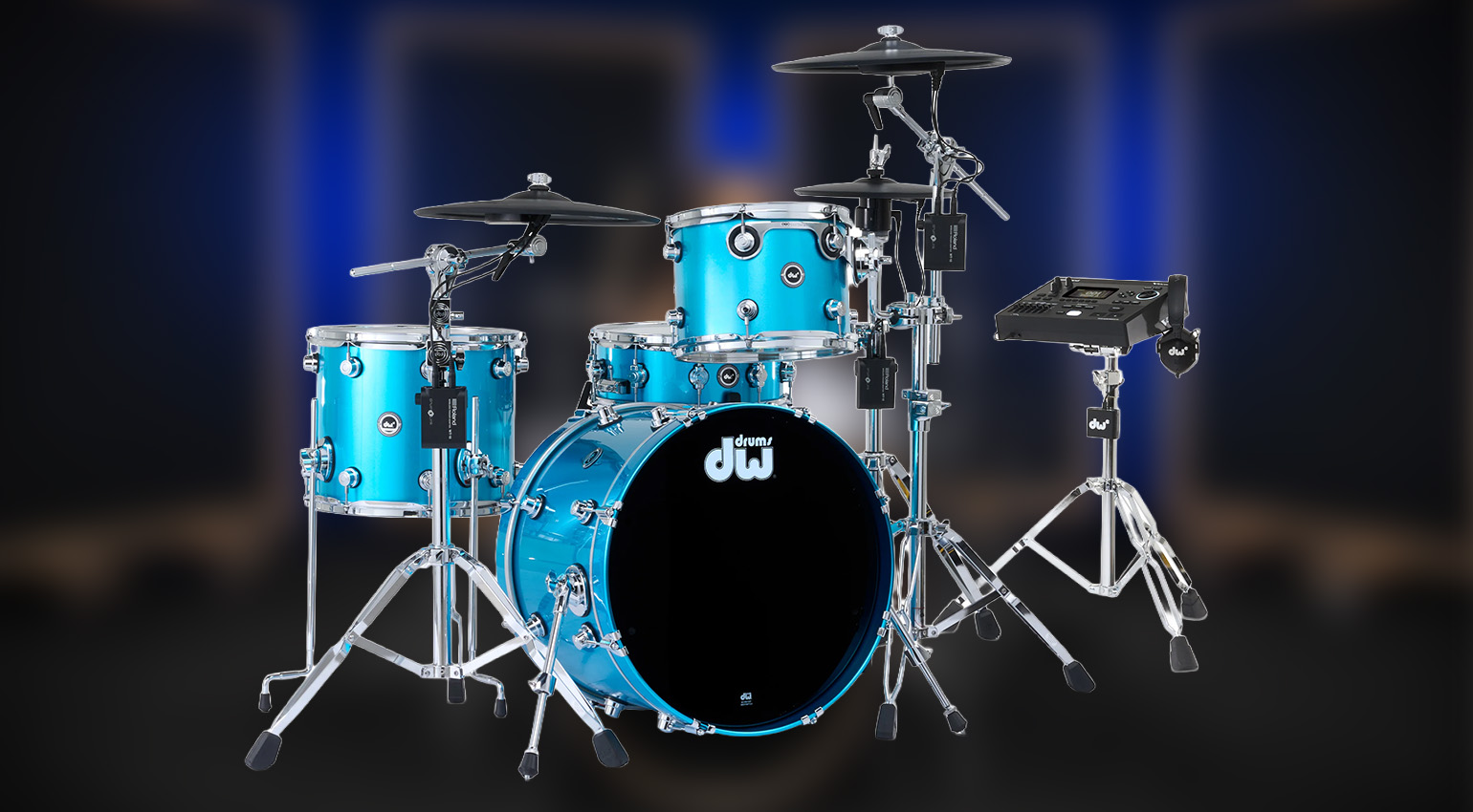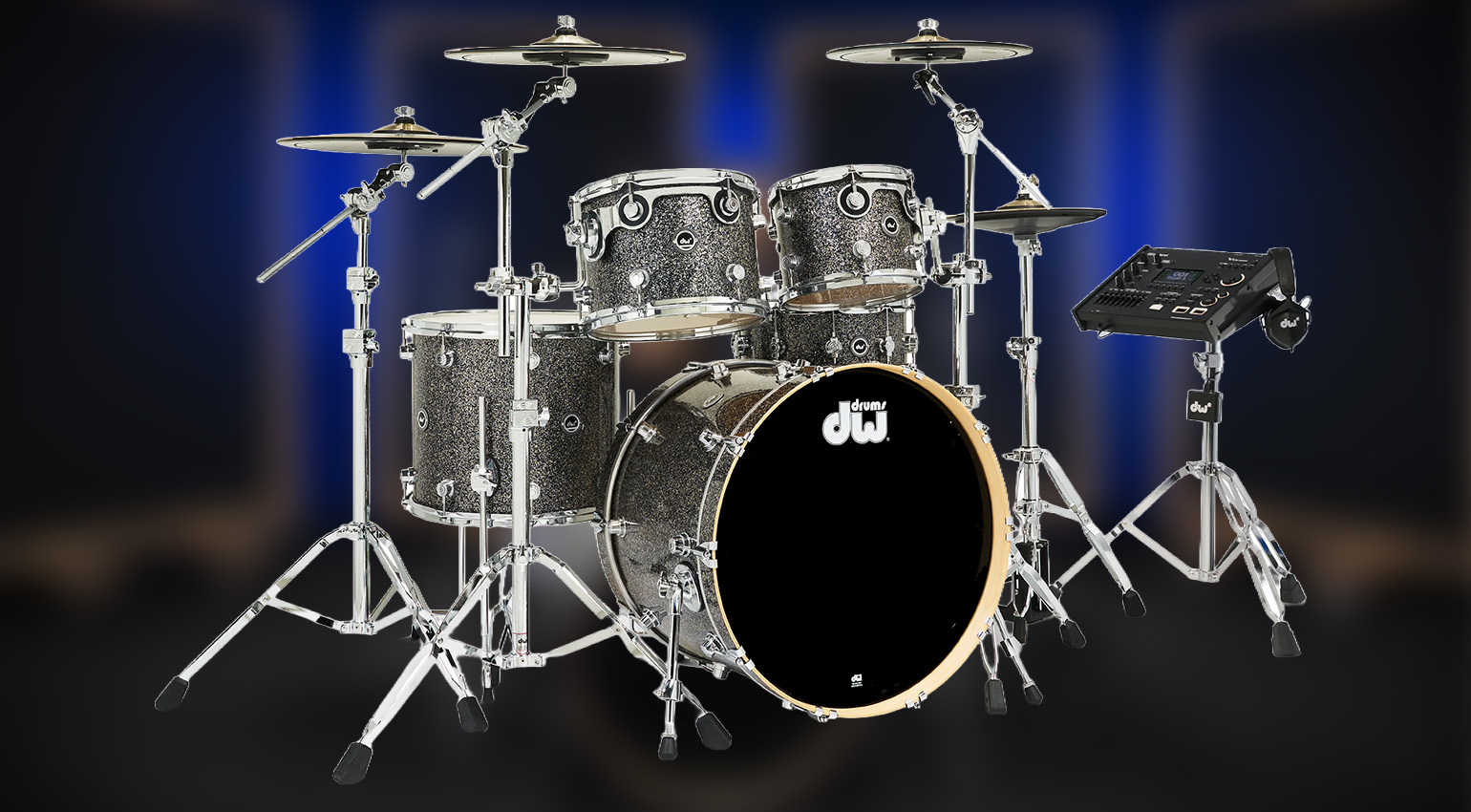 In what must be the most obvious of collaborations, Drum Workshop, aka DW, have paired their super-flexible DWe kits with the Roland V-Drum modules to give you the best of both worlds. The DWe kits are unique in that they allow you to choose from a classic DW acoustic kit or an electronic kit.