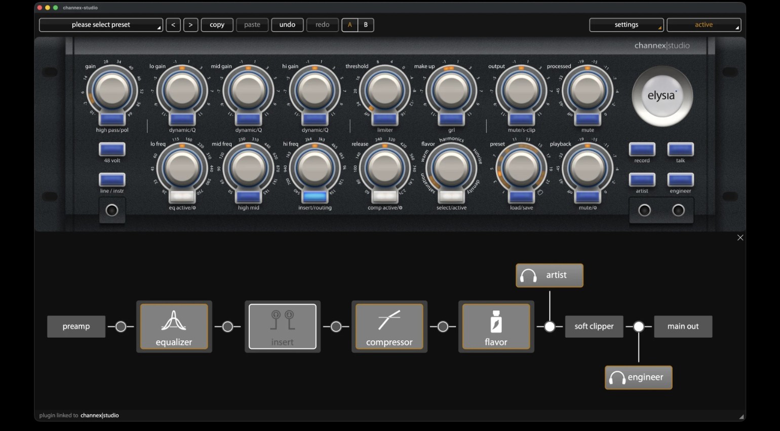 The dynamics section is equally impressive, with an intuitive compressor and soft clip limiter that can be used in tandem for the most musical and natural shaping possible, regardless of how much gain reduction is happening. As you would expect, you also get elysia’s unique gain reduction limiting function, so the compression stays within a predefined range.