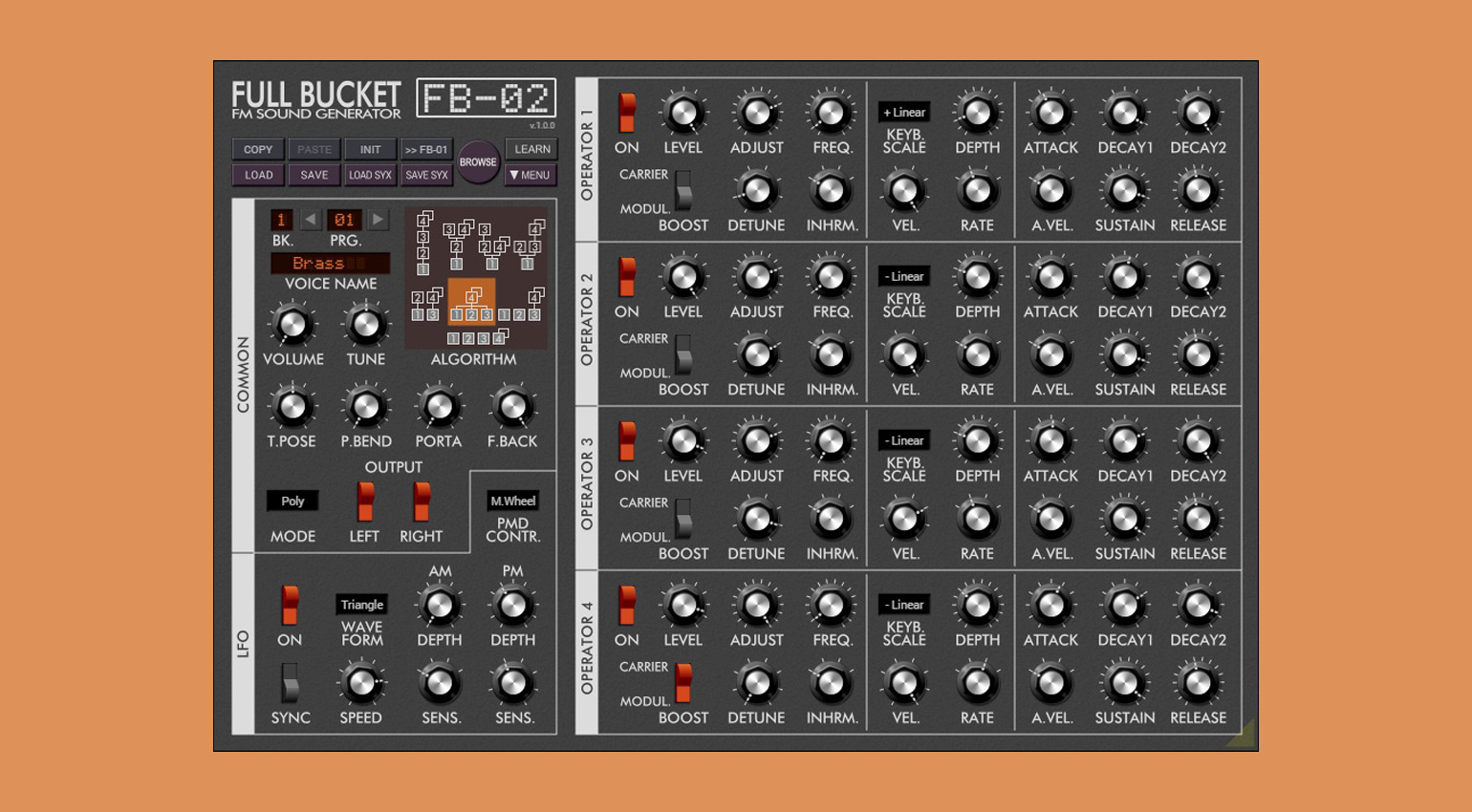 One member of the Yamaha FM family from the ‘80s that’s often overlooked is the FB-01, an unassuming 4-operator half-rack module from 1986. Like most FM synths of the era, it offered no hands-on control whatsoever. Full Bucket Music, purveyors of fine free software synths, have dedicated an emulation to the FB-01 that not only delivers the classic sounds, but also makes them much more controllable.