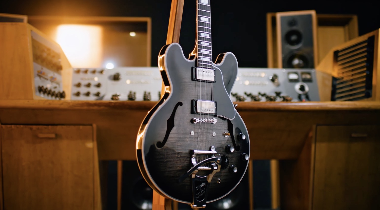 This model features VOS nickel hardware, including a period-correct ABR-1 Historic no-wire bridge. A Bigsby B7 Vibrato offers subtle shimmers for expressiveness, while the custom Gibson hardshell case sports a brown exterior and Gary Clark Jr. graphics.