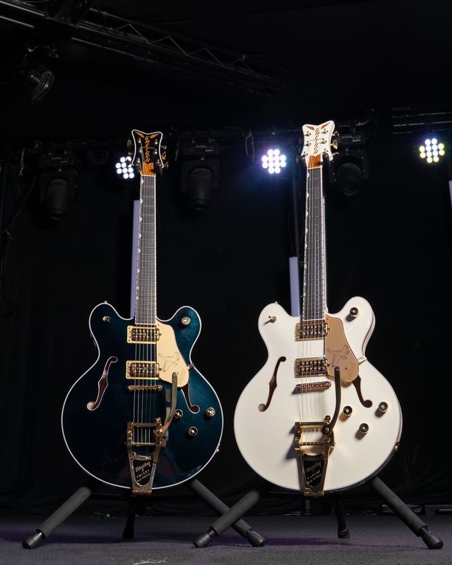 Gretsch has released the Falcon Center Block LTD semi-hollow model as a limited-edition run. Available in Vintage White and Midnight Sapphire finishes, both with a String Thru-Bigsby vibrato.