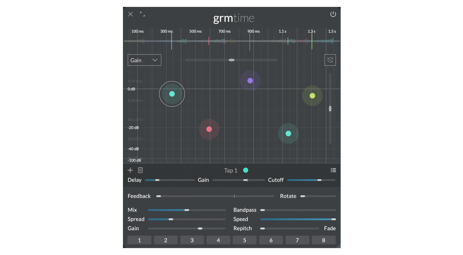 - Time: A different approach to delay processing with 32 individually tunable delay taps.