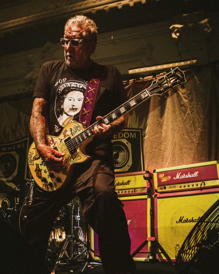 Sex Pistols purists will, of course, be aware that Jones didn’t play Marshall amps in 1977, and instead wielded a “borrowed” (ahem, stolen) Silverface Fender Twin Reverb. But that was then, and this is now, as these days he plays Marshall amps live and tours with this exact same amp setup.