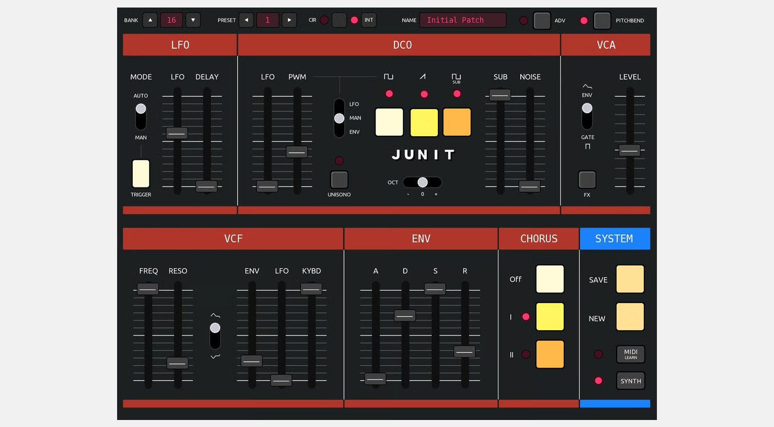 The editor comes with 110 presets, 56 of which are based on original Juno factory sounds.