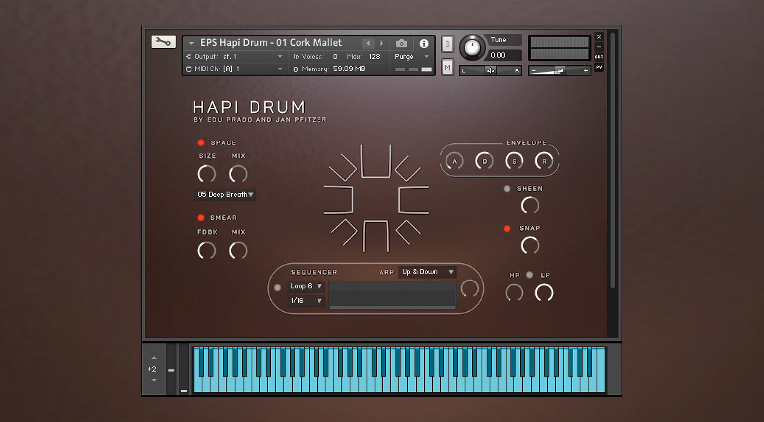 HAPI Drum is a sample library of the HAPI Steel Tongue Drum, created by Edu Prado and Jan Pfitzer and features samples taken using both a cork and a rubber mallet. These samples have been used to create 11 different .NKI patches featuring a simple yet useful interface.