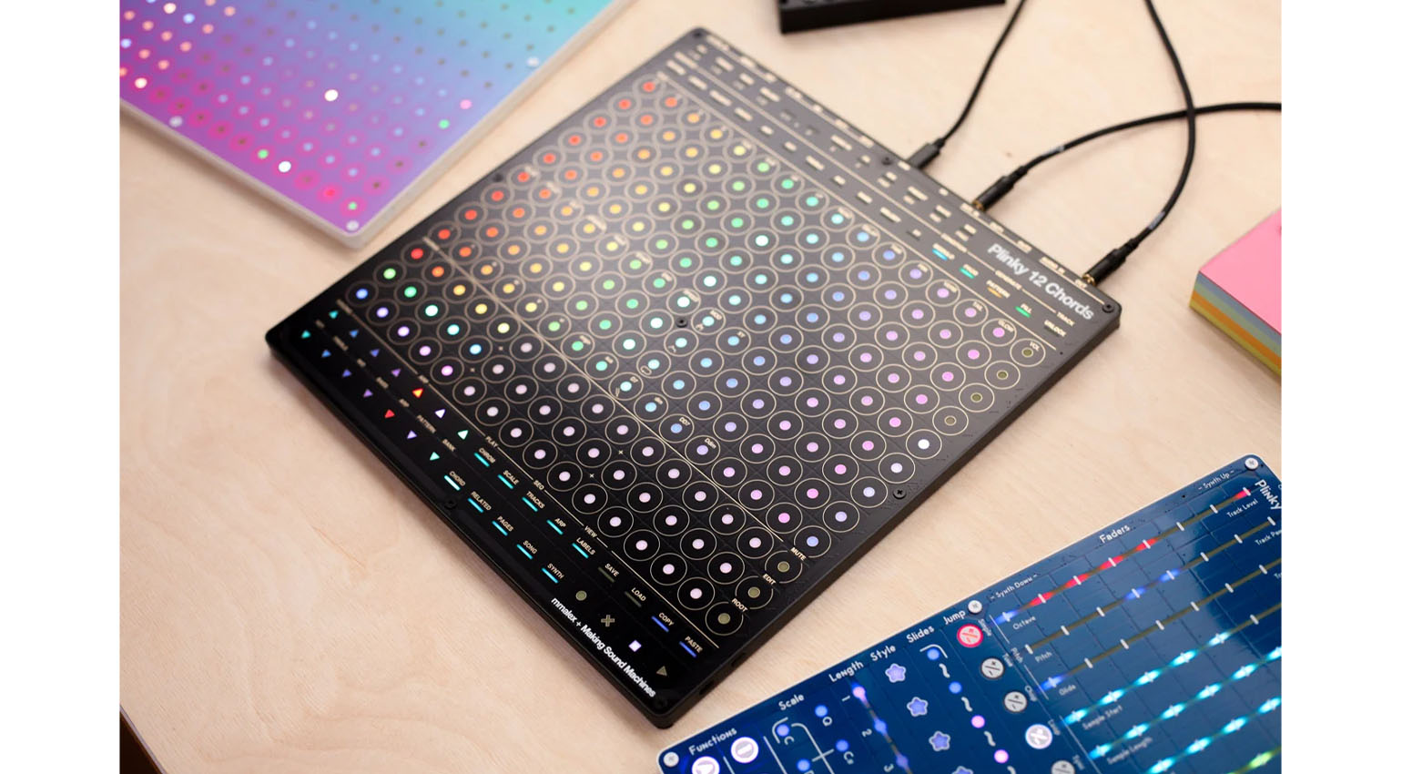 “The panel is also almost entirely distraction- and label-free,” says Making Sound Machines. “This makes it the perfect panel to make use of Plinky 12’s monome grid compatibility, as well as the forthcoming web-based coding environment.”