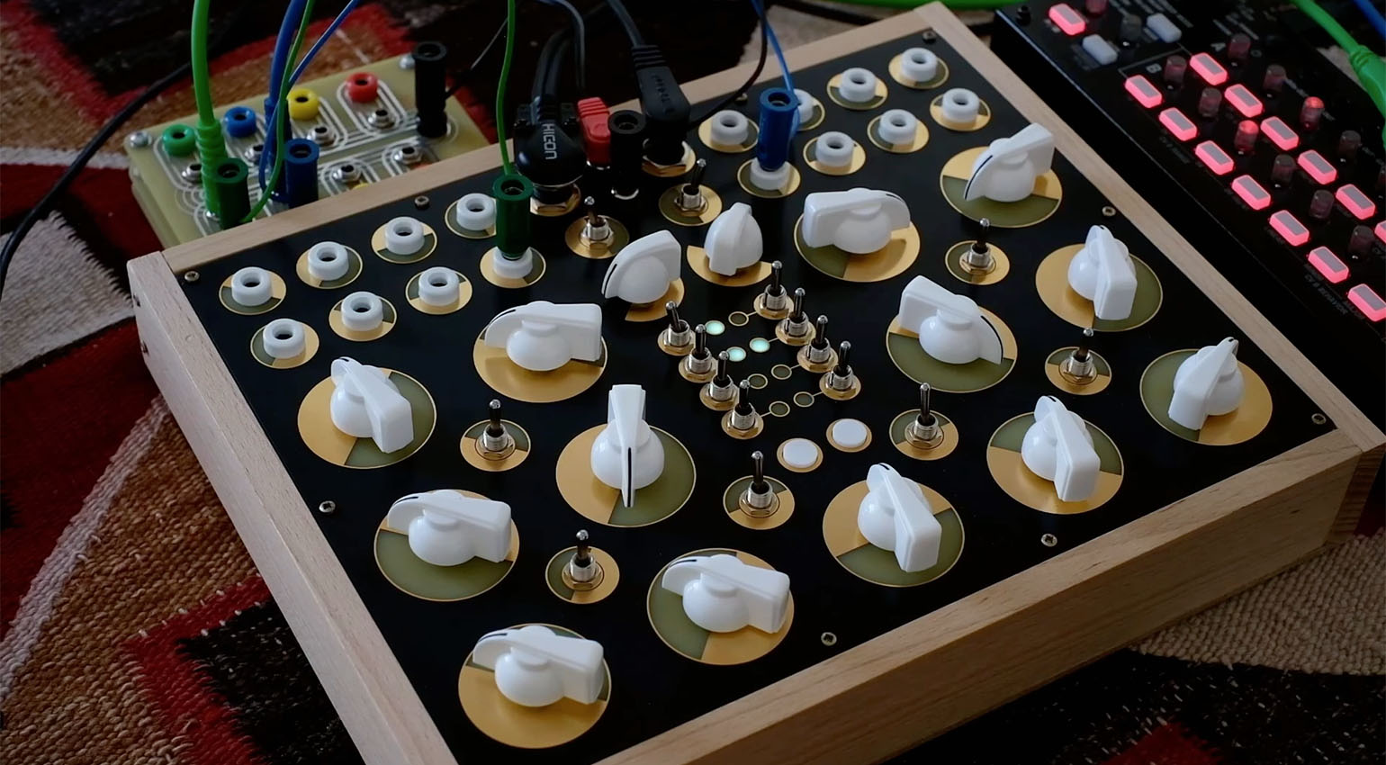 Before I get into the sound of Röntgen, an experimental analog instrument from Tilde Instruments, can I just say how beautiful-looking this thing is? I love the white knobs over the yellow and green-backed circles. It’s so clean and inviting, utilitarian and yet inspiring.