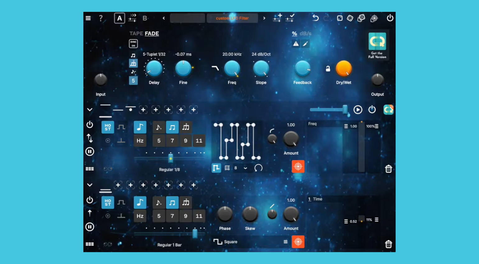 Quantum Delay Lite offers a choice of two delay algorithms (Tape or Fade) that can sync to your DAW tempo. You can also shape the sound using a variable-slope lowpass filter.