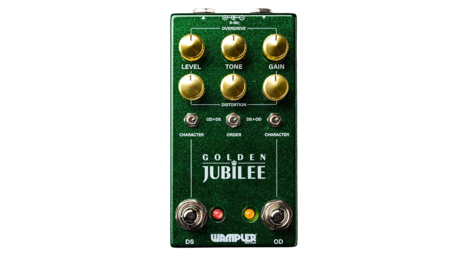 Brian Wampler makes some good effects, and his new Golden Jubilee is voiced on one side like an ’80s/’90s hot-rodded Marshall-style overdrive amp voice (OD), think Silver Jubilee series, etc. The other half (DS) is an American-voiced ’90s California-style (Mesa-Boogie) distortion voice.